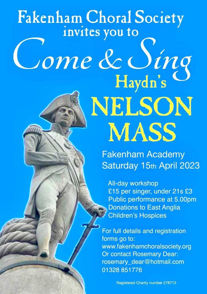 15 April 2023 Mark conducted Haydn’s famous Nelson Mass for Fakenham Choral Society’s “Come and Sing.”