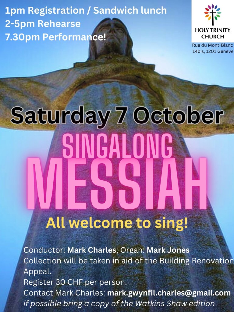 We visited Geneva for a second time in early October to join the choir of Holy Trinity Geneva to sing Handel’s Messiah. Katharine sang and Mark accompanied the choir on the organ.